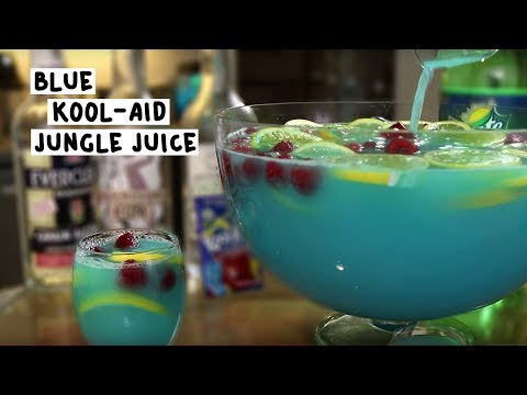 The Blue Kool-Aid Jungle Juice - Blue Raspberry Lemonade Punch - Here's the recipe: BLUE KOOL-AID JUNGLE JUICE Orange Slices Lemon Slices Raspberries 2 Packets Blue Raspberry Lemonade Kool-Aid 8 oz. (240ml) ...